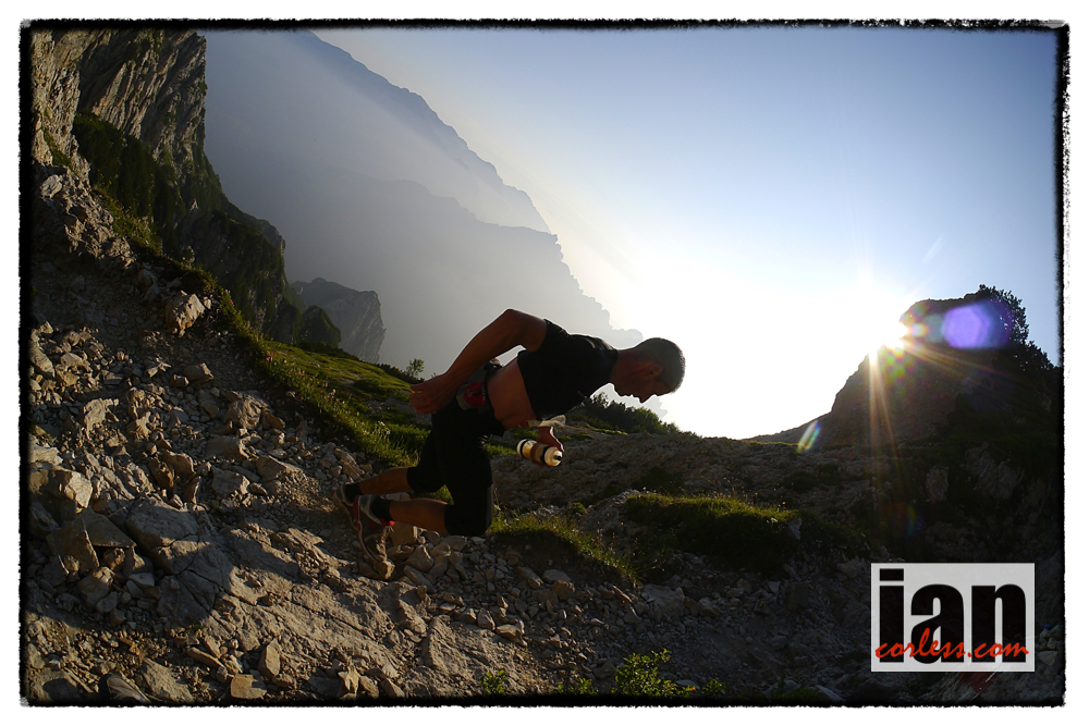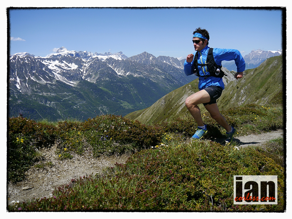 Ben testing exciting new inov-8 product, including the Race Ultra Vest, in the Alps. Photo byhttp://www.iancorless.com
