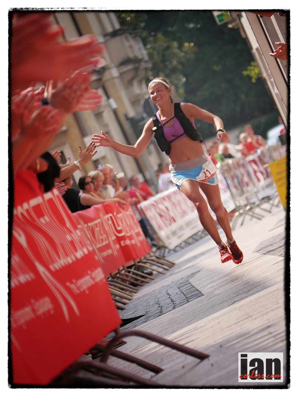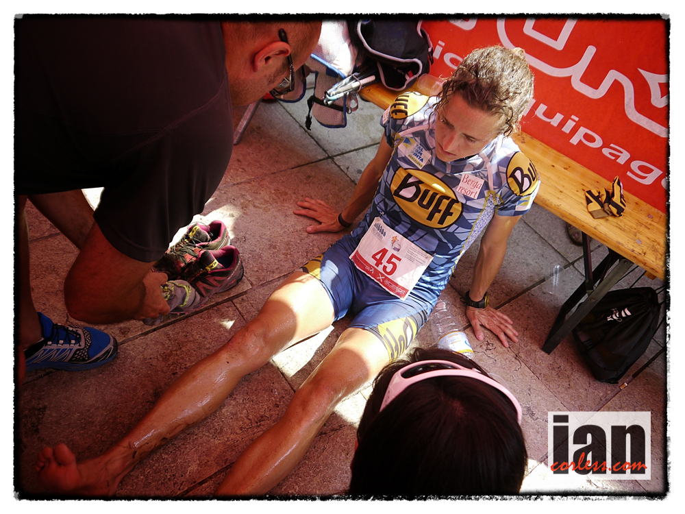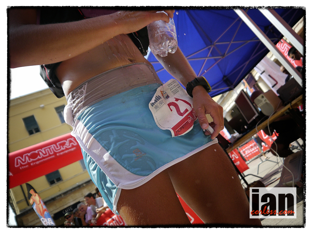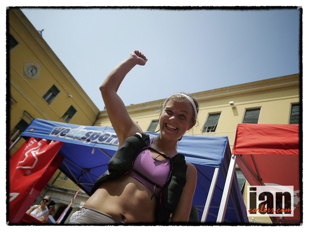 ©copyright .iancorless.com.P1170625 Nuria arrived in Valdagno and looked to be a spent force. The temperatures were now around the mid 30’s and the combination of heat and pace had cooked her. She said after the race. ‘The miles just didn’t tick past today. I had to push for everyone and it was a tough day’.