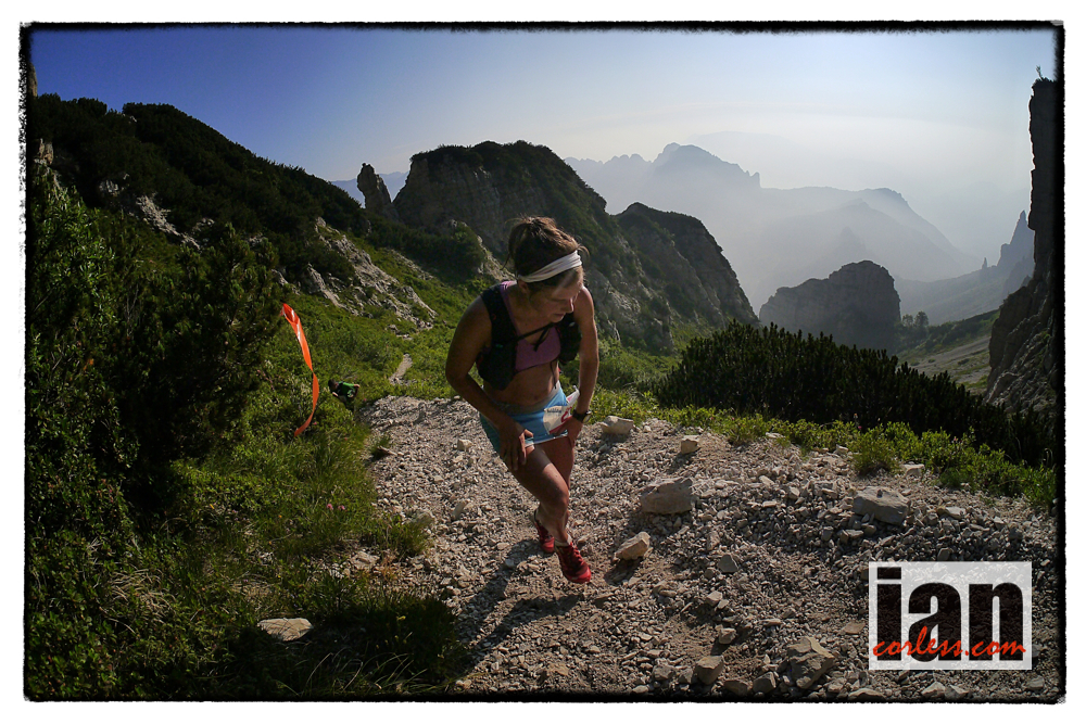 ©copyright .iancorless.com._1160274The ladies race was always going to come down to a battle between Nuria Picas and Emelie Forsberg. Emelie has had a stunning 2013 and her calendar of late has seen her race multiple times and place 2nd at Mont Blanc Marathon, 1st at Ice Trail Tarentaise, 2nd at Dolomites VK, 1st at Dolomites Skyrace and then of course she was coming to Italy to tackle 80km’s with over 5000m+ of vertical gain and ascent against a fresh Nuria.