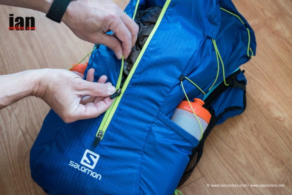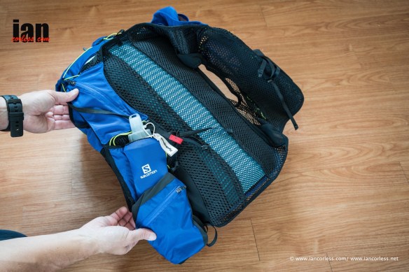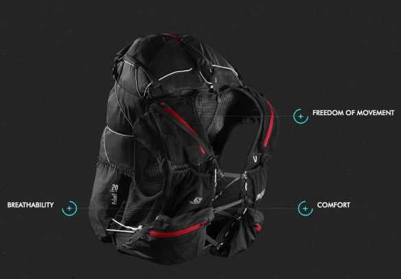 Fit is sweet and with all the adjusters you can really get this pack close to your torso. It fits like a piece of clothing and there are no rough edges – all the seams are soft. Salomon actually say that the pack may be worn against the skin and it will feel like apparel.