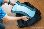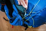 On the sides of the pack between the bottom rear and the front lower pockets there is a yellow cord on each side – again this allows you to pull the bottom of the pack as close to your back as you require.