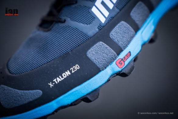 It is a precision fit shoe classed as scale 1* – this means the narrowest shoe that inov 8 do. For example, a 5 is wide (2E fit). So, if you are a Hobbit, this is not for you! To clarify though, when one is running on challenging, muddy and technical trail, a shoe should be close fitting with a precision feel. I don’t consider myself to be a ‘1’ fit but the control a tight-fitting shoe is worth it. For me, the comports would come with how long I could run in such a precision shoe before having any discomfort, for others this is not a problem. I certainly had no issue with the X-Talon 230 for 4 hours on the trails. Drop is ‘2 arrow’ which is 6mm and the cushioning is 7mm at the front and 13mm at the rear. So, for many, this is not a shoe for ultras – again though, this is so dependent on experience and conditioning.
