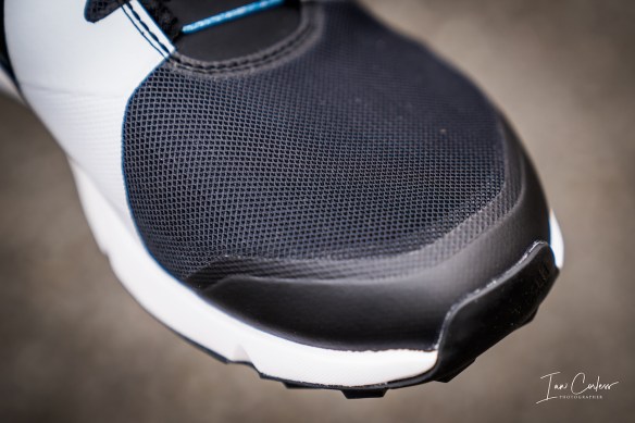 The first thing you notice are two straps on either side of the outside of the shoe. It makes the shoe look a little heavy and somewhat over engineered. This is a protective Skin guard – more on that later.