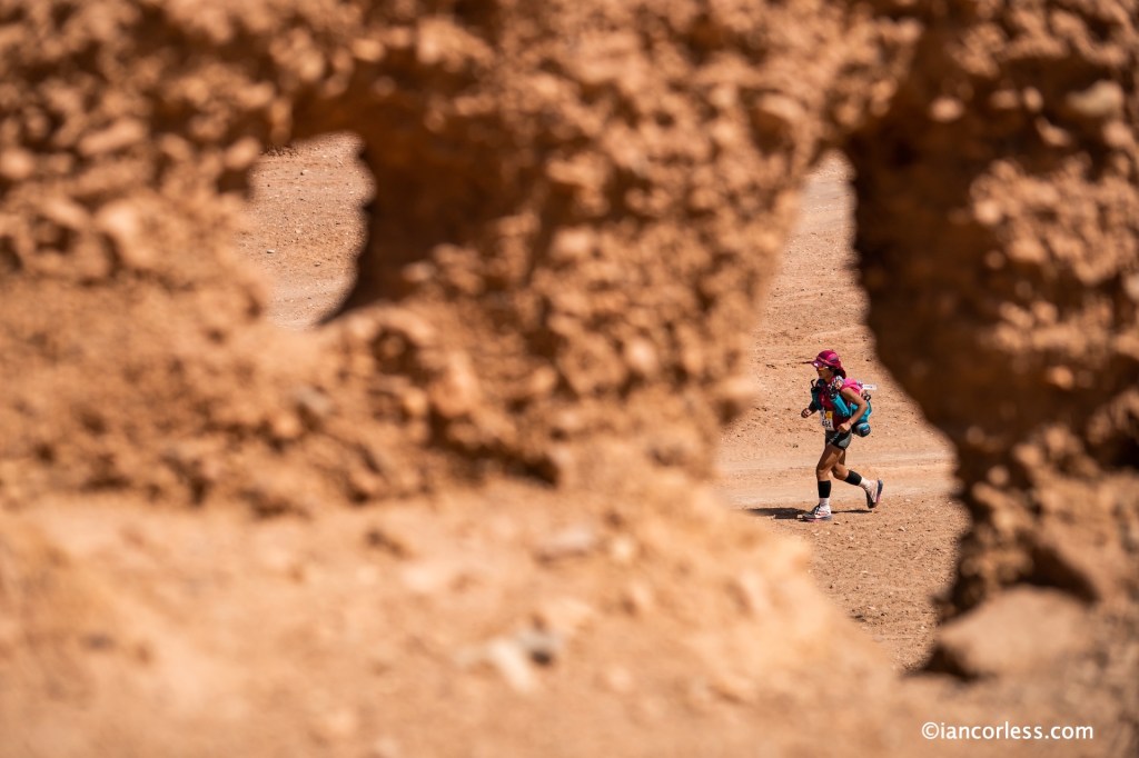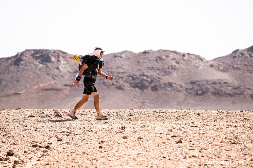 Heat is a brutal beast to manage and quite simply keeping core temperature lower, particularly when running can be difficult. It was very clear that many runners, maybe far more than usual were running considerably less and walking became the norm except for the front of the race, the top men and women were running as usual but at a reduced speed. It’s important to clarify here that walking is essential at MDS and many walk far more than they anticipate, even in a normal year. Heat and a pack add considerable strain and why many think pre-race they will run 80% and walk 20%, the reality is they will walk 80% and maybe run 20%. For 2021, walking was the norm.