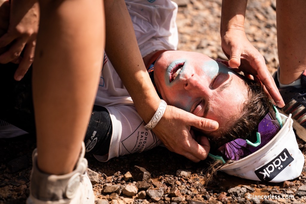 The sickness the ripped through bivouac left runners drained, empty, void of calories and energy, despite the will and desire to push on, so many were left with empty shells that had to succumb to physical conditions. The physical conditions of course were only made worse by the oppressive and damaging heat.