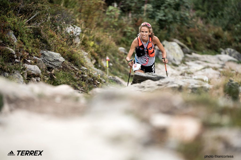 The event is now huge! The TERREX team had Pablo Villa, Luis Alberto Hernando, Tom Evans, Emily Hawgood toeing the line and sadly, the omission of Sabrina Stanley due to Covid. It’s with noting here that a listen to ‘The Chamonix Tapes’ with Tom Evans provides a great insight not only to the event, but how to prepare for it is a ‘must’ listen. The race, despite a quality line-up was always going to be about Jim Walmsley and Kilian Jornet and for much of the race, this was the story. Jim had the lead, lost it to Kilian and and in-form Mathieu Blanchard. Kilian put the hammer down for the win against Mathieu and behind as Jim faded Tom Evans put his plan in action. He left Zach Miller who he had traded run steps with for many an hour and hunted Jim.