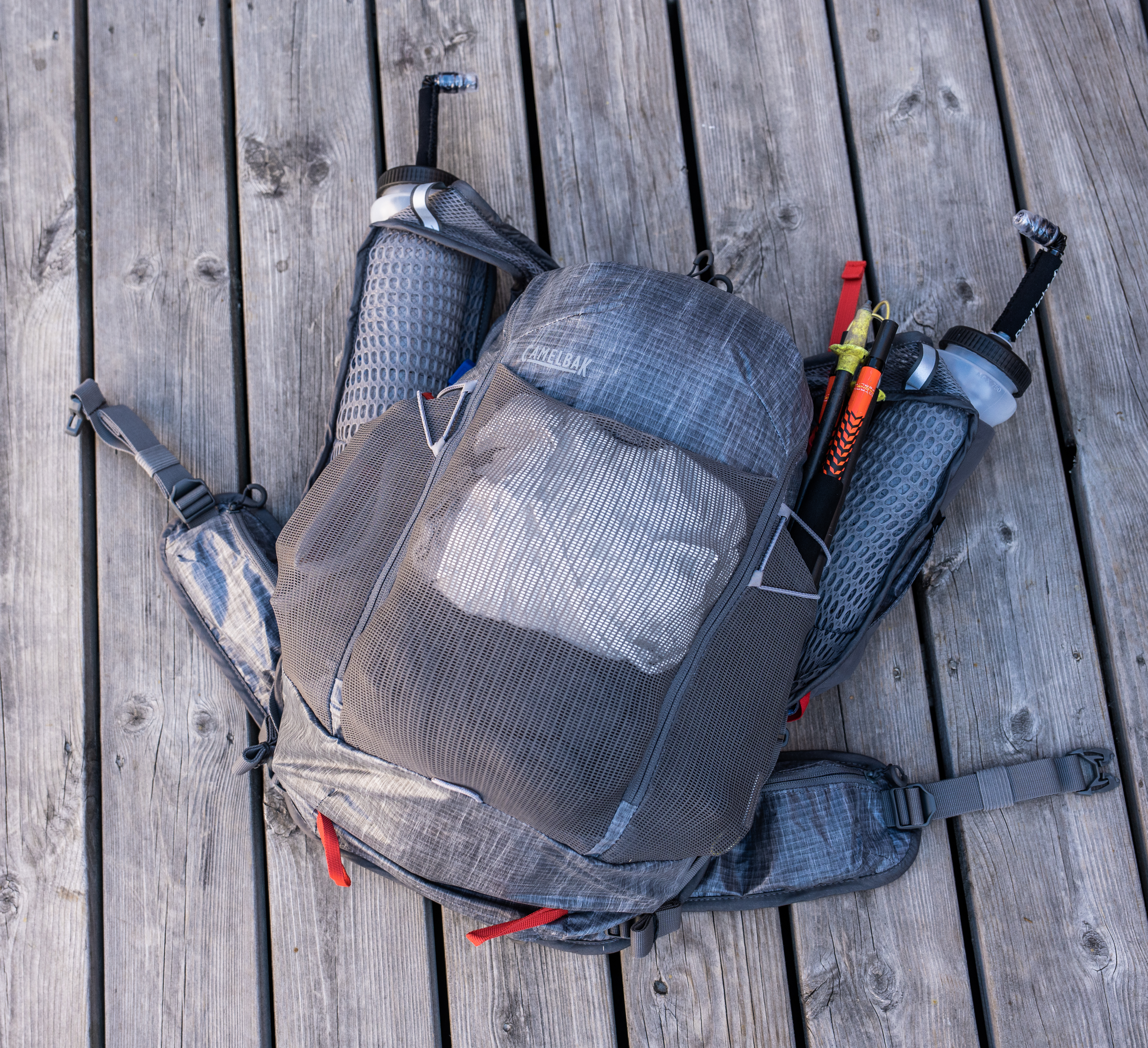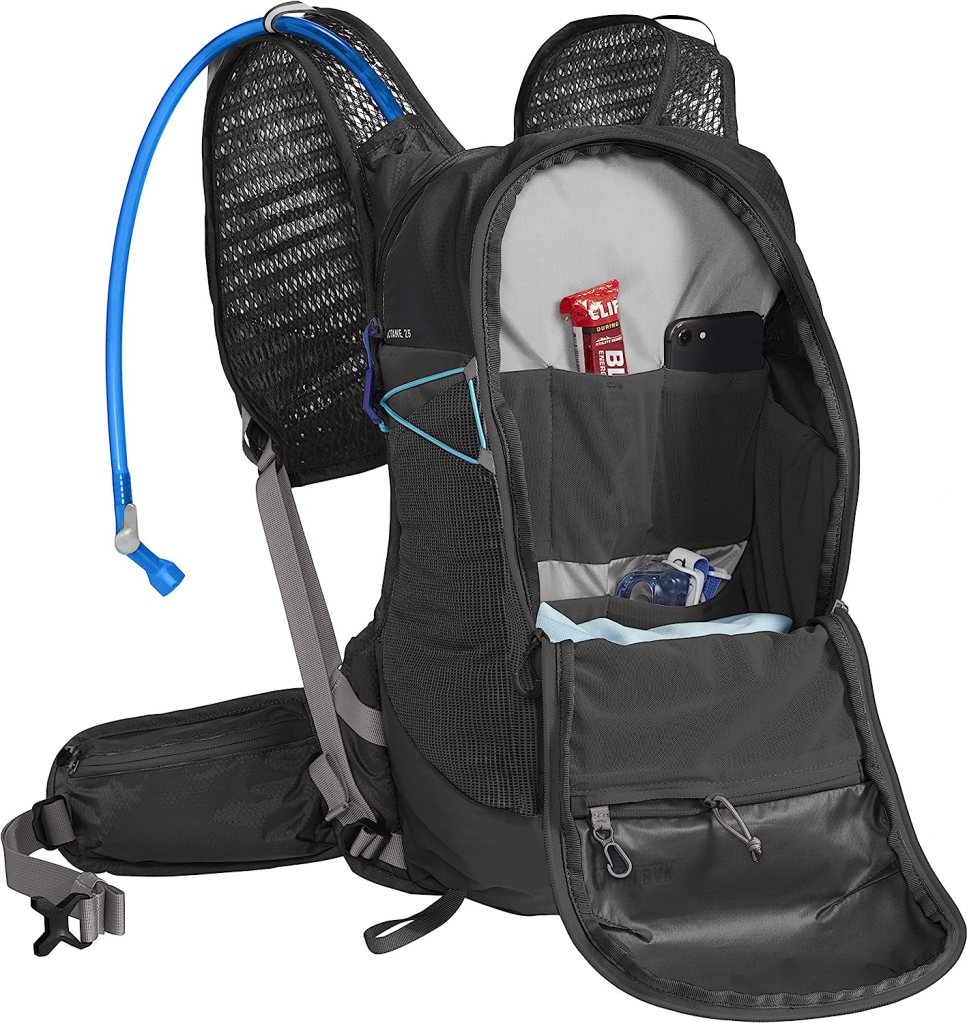As you would expect, CamelBak has integrated a system to keep the bladder secure and easy to access, with the hydration hose tucked in and out of the way with secure fixings at the front. For many though, the use of the bladder can be a plus or a minus, so, removal is easy. At the front, there is storage for two large bottles or soft-flasks.