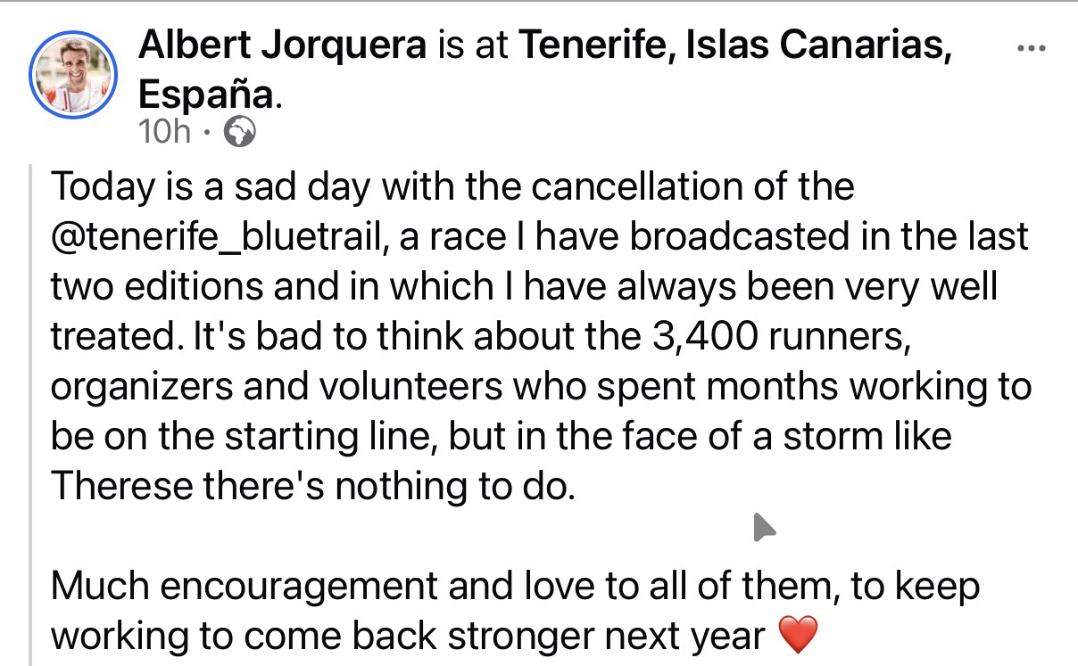 And then, just like that, overnight, A cancellation of Tenerife Bluetrail by UTMB – this brings a different kind of reality into focus. Here, there’s no financial mismanagement or organisational failure to question. It’s simply the fact that some things sit beyond anyone’s control. Safety has to come first. But the impact is still real.