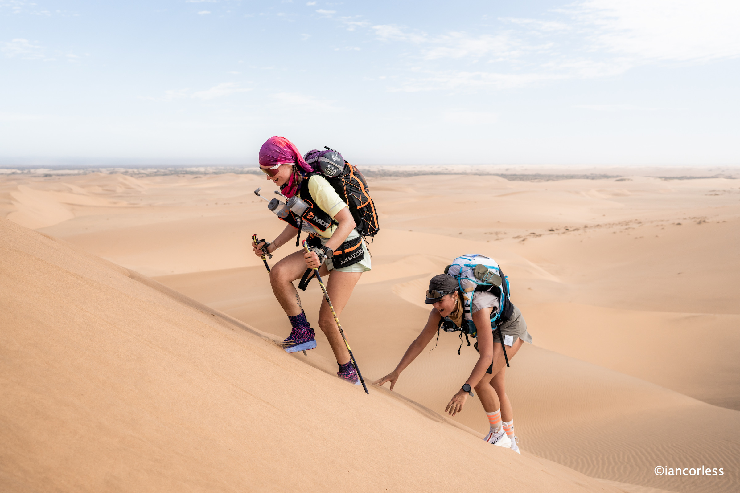 The first challenge: a steep descent down a glowing dune, soft sand cascading beneath every step. It was beautiful. It was punishing.