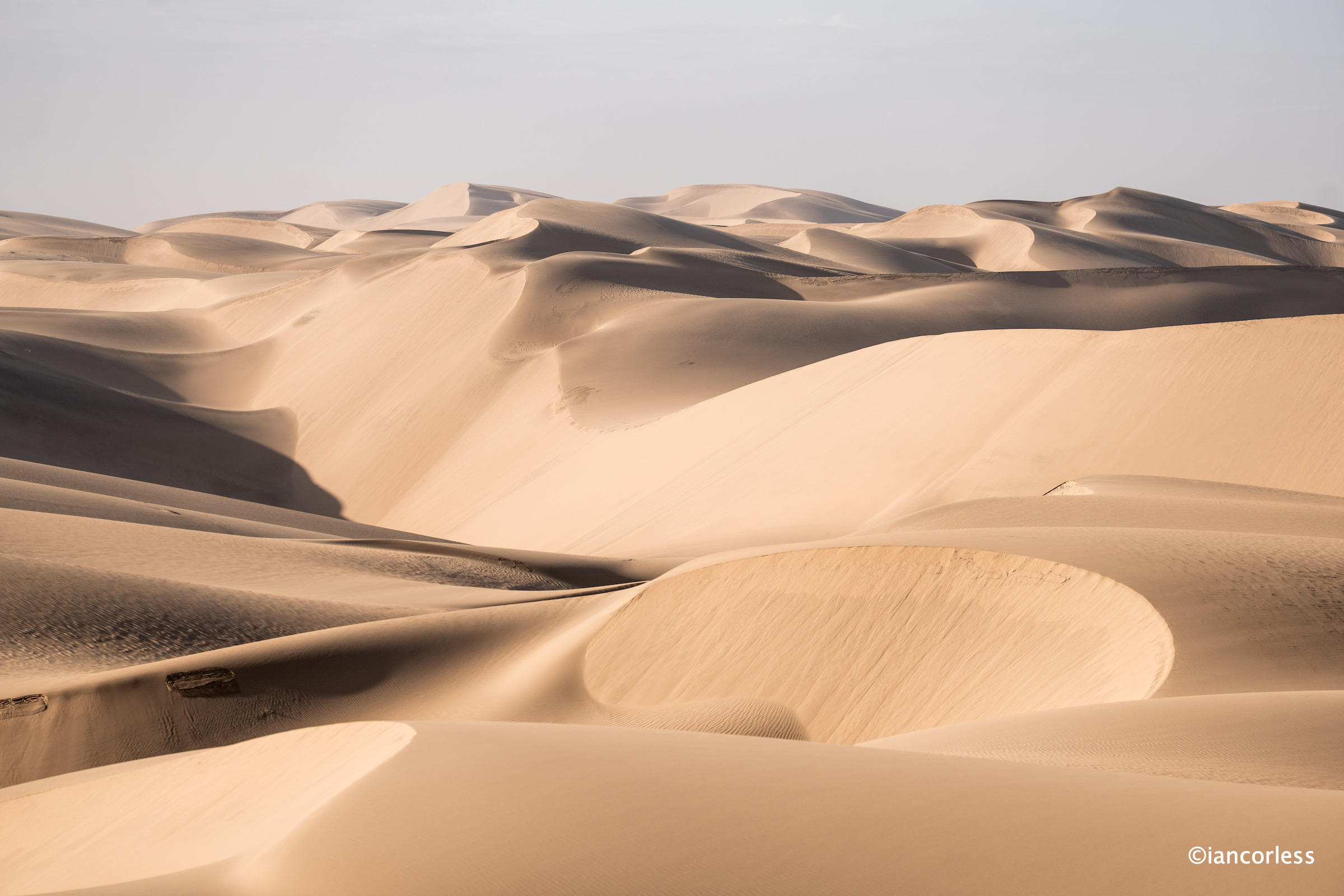 What the course took in effort, it paid back in views. Wide open desert. Long lines of dunes. Light bouncing off ridges and carving shadows that stretched for kilometres.