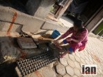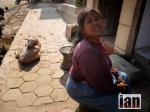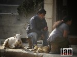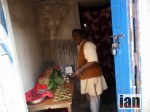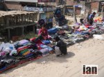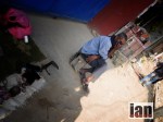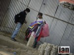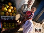 A man selling apples, a girl begging, her friends a goat and a chicken while her little brother crawls around the floor in rags for clothes.