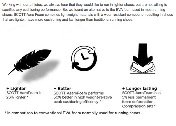 The first thing I noticed when I lifted them out of the shoe-box was the weight – at 7.4 oz, this is a lightweight shoe. However it also boasts AeroFoam midsole cushioning which makes it a good compromise in terms of weight and cushioning for the long-distance ultra-runner not seeking to go minimalist. The outsole offers great grip providing great traction on the road, which is a typical Scott shoe feature. Drainage holes on either side of the toe-box keep your feet relatively dry in wet weather conditions. The shoe I tested is a women’s specific fit.