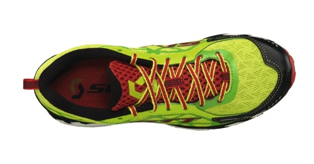Scott Trail Rocket UpperThe upper is very breathable with a wide toe box, snug heel compartment that provides a solid and secure fit and importantly, toe protection is good should you have any unwanted encounters with rocks or obstacles on the trail. The shoe is designed to work well with or without socks, the choice is yours. Sizing is true to size, however, if you are going without socks you may want to check what works for you. Lacing is solid and depending on your preferred lacing method the shoe holds firm to the foot and is extremely comfortable. The laces themselves have stretch and once tied hold firm and don’t come loose. Missing from the front of the shoe is the elastic bungee that could hold and retain excess lace (see T2 review). I don’t understand this? It was a simple addition that added no weight but provided a really practical solution to a problem that exists for all runners unless you use Salomon!