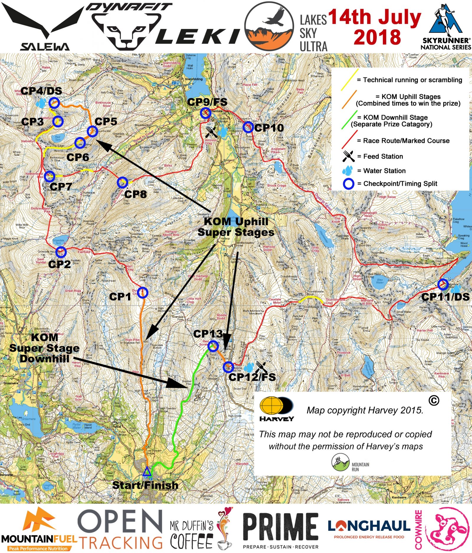 The race starts at 0700 on Saturday July 14th. First runners are expected in Ambleside around 1400hrs and the race cut off is at 2100.