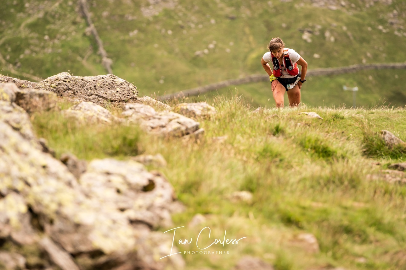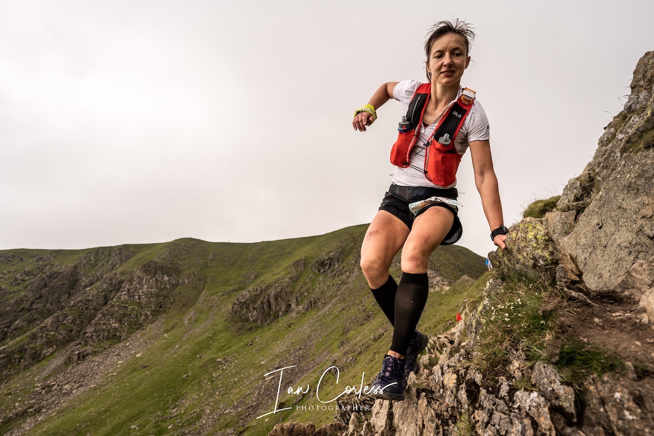 As the elite field of 74 runners began the ascent of Dove Crag (via Low Pike and High Pike), Great Britain-international trail-runner Rob Sinclair took an early lead. By notorious Striding Edge the Scot had a 10-minute advantage and as the day progressed it looked like he might break the course record of 7:30:27.